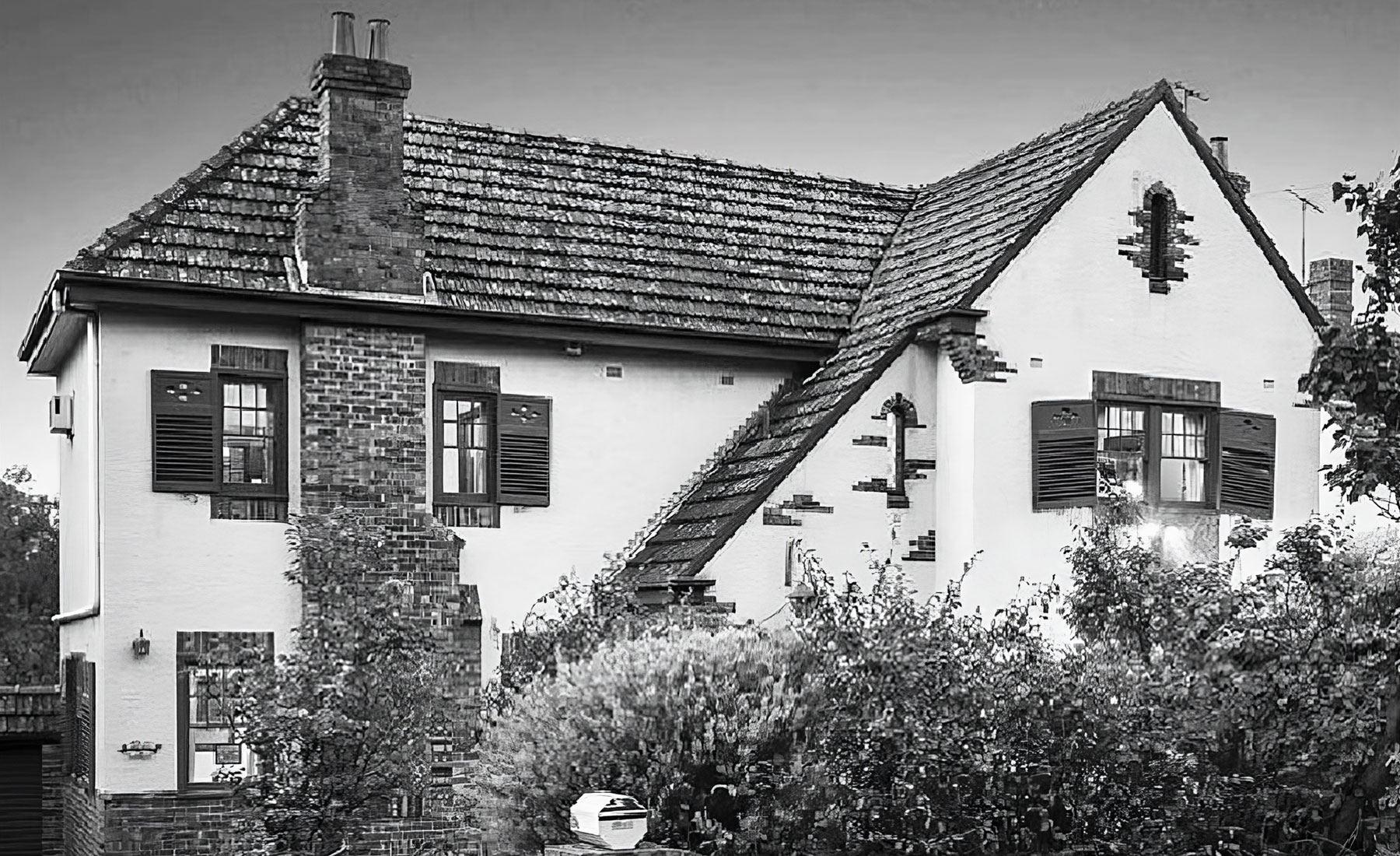Built in the interwar period c. 1919-1940, the house is listed as a significant property and a fine example of an Interwar Old English building. It has a high level of integrity with many original features and details intact including the steep tiled roof, decorative brickwork and small arched windows.