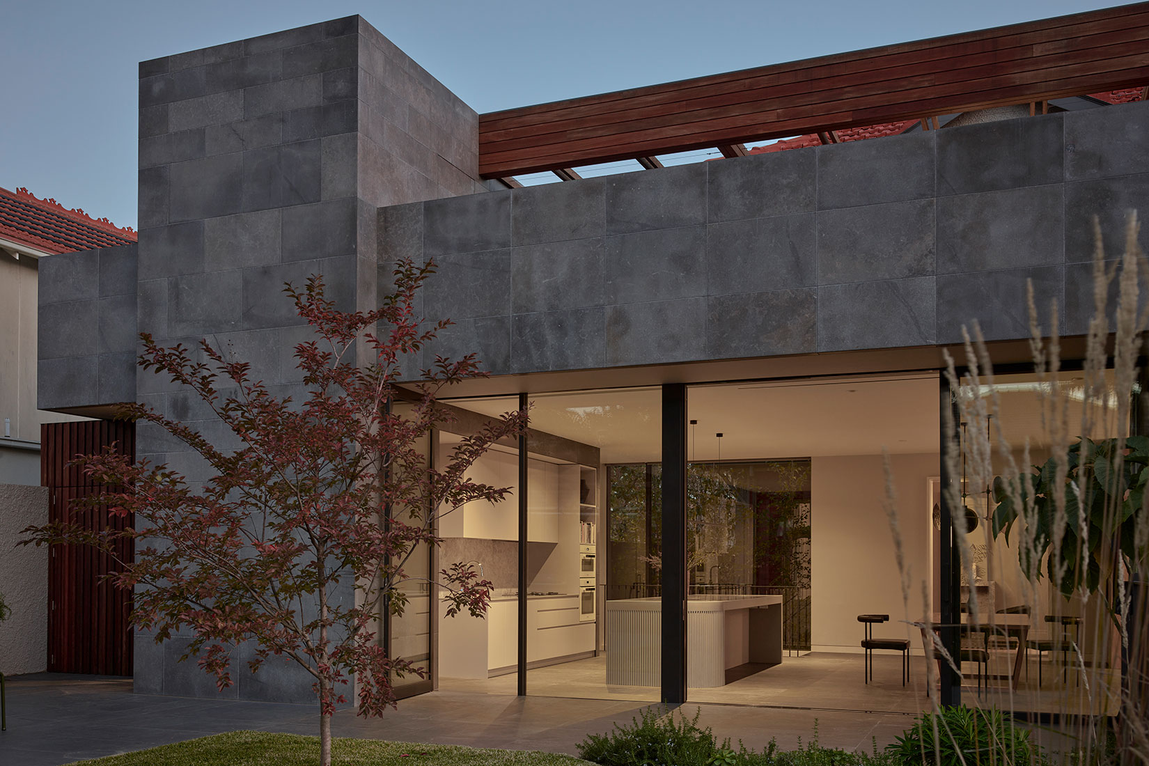Drawing reference from the original federation features in the house, the material palette is one of muted warm tones inspired by the dusty colours of Australian native flora.